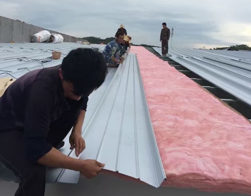 工程材料:360度yx65/430型直立锁边 上海宝钢0.5本色镀铝锌屋面板、镀铝锌脊瓦、泛水收边,欧文斯科宁保温棉、镀锌支架、直立锁边电动咬口设备。